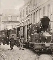 - Il ne faut pas se méprendre ici sur le terme tramway qui ne peut être assimilé au transport urbain désigné sous ce terme. Il s'agit en fait ici d'un chemin de fer d'intérêt local dont les voies couraient sur les accotements des rues et des routes. La loi du 31 juillet 1913 sur les lignes secondaires clarifia la situation en les désignant sous le vocable commun de Voies ferrées d'intérêt local. Voir Bertin 1994, p. 24-25.