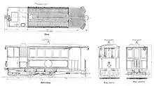 - quatre voitures à deux essieux de 40 places (20 places assises, plus 10 debout sur chacune des plates-formes ouvertes aux deux extrémités) provenant de la transformation des automotrices Serpollet pour trois d'entre elles (la quatrième aurait été fournie par les établissements Serpollet en contrepartie de la non exécution de ses engagements)[43].