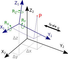La transformation de Helmert est une similitude permettant de passer d'un système de coordonnées à un autre, en minimisant l'écart quadratique moyen entre les positions des points connus dans le système cible et leurs transformées depuis le système source. Elle nécessite donc de disposer d'un nombre suffisant de points connus dans les deux systèmes. Cette transformation peut s'analyser comme la succession de trois transformations : une rotation, une translation, et une homothétie (dont le rapport peut s'interpréter comme une variation d'échelle). Elle est très utilisée en topographie pour intégrer dans un plan en coordonnées générales (Lambert par exemple), un lever de qualité suffisante mais en coordonnées locales.