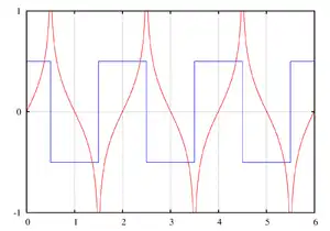 On peut remarquer que (excepté en , où la fonction signe est nulle, ce qui implique ). Donc la transformée de Hilbert inverse apparait clairement :