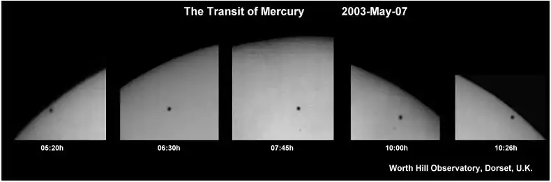 Vus depuis la Terre, les transits de Mercure sont beaucoup plus fréquents que les transits de Vénus, avec une fréquence d'environ 13 ou 14 par siècle. En effet, la planète Mercure est la plus proche du Soleil, ce qui implique une période de révolution plus courte que celle de Vénus. Ils peuvent se produire en mai à des intervalles de 13 ou 33 ans, ou en novembre tous les 7, 13 ou 33 ans.