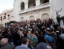 Pendant six semaines, la tension et les affrontements se prolongent, avec notamment des manifestations qui prennent pour cible le gouvernement Ghannouchi, qui refuse les revendications des manifestants et de différents organismes issus de la révolution, dont la principale est la convocation d’une assemblée constituante, à quoi s’ajoutent selon les tendances la démission du Premier ministre Ghannouchi, la dissolution définitive du Parlement et des commissions d’enquête post-révolutionnaires, une forte épuration judiciaire des magistrats bénalistes ou la demande d’extradition de Ben Ali pour haute trahison. Les manifestants, plusieurs milliers, occupent les kasbahs de Tunis et Sfax à partir du 21 février[88],[89], à l’appel notamment du Conseil national pour la protection de la révolution. Ils obtiennent gain de cause le 27 février, avec une manifestation de 100 000 personnes à Tunis qui pousse à la démission le Premier ministre, remplacé par Béji Caïd Essebsi, plusieurs fois ministre sous la présidence de Habib Bourguiba. Ce nouveau tour de force contestataire coûte cinq morts et 88 manifestants arrêtés[90],[91].