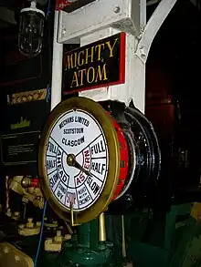 Sur les navires propulsés à la vapeur, il y avait un transmetteur dans la salle des machines et un autre dans la chaufferie reliés à la passerelle de façon que les chauffeurs puissent anticiper la demande de vapeur en modifiant le nombre de brûleurs de chaudière allumés. De même, sur le transmetteur d’ordre de la chaufferie, il existait parfois en supplément l’ordre : « ATTENTION A LA FUMÉE » pour signaler une fumée trop importante comme sur le ferry britannique SS Twickenham Ferry.[réf. souhaitée]