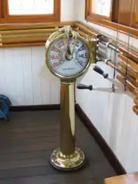 Le transmetteur d’ordre mécanique a considérablement fiabilisé les transmissions qui pouvaient être mal interprétées en raison du bruit ambiant. Le transmetteur d’ordres mécanique est de forme circulaire sur pied, et comporte deux aiguilles, l’une commandée de la passerelle et l’autre de la salle des machines. Les ordres basiques suivants sont transmissibles (noirs pour machine avant et rouges pour machine arrière) :