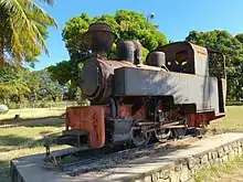 - À Diego Suarez : trois lignes ont été construites. Dès 1889, Paul Locamus, qui avait quitté la Nouvelle-Calédonie après y avoir conduit plusieurs affaires économiques et éditoriales contestables[18] obtient du gouvernement français la possibilité d'installer une immense usine de conserves de viande pour l'armée française. Il crée la société de la Graineterie Française et s'installe à Antongombato, près d'Anamakia[19] (Diego Suarez était une colonie française, alors que Madagascar ne l'était pas encore). En 1890, une ligne de 8 km est construite pour relier la conserverie à Anamakia ; mais la mauvaise gestion de ce projet démesuré et les tracasseries administratives conduisent l'entreprise à la faillite au bout de trois ans[20]. Cette conserverie sera reprise par la compagnie coloniale française d'élevage et d'alimentation de Madagascar et fonctionnera jusqu'au moins 1960.