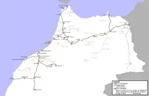 Il consiste en un axe principal d'orientation générale nord-sud reliant Oujda au nord-est à Marrakech au centre-sud, via Fès, Meknès, Kénitra, Rabat et Casablanca. Des lignes en antennes desservent Tanger, Nador, Oued Zem, El Jadida et Safi.