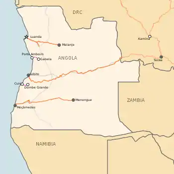L'Angola dispose d'un réseau de chemin de fer composé de lignes isolées les unes des autres, fruit du passé colonial. Longtemps paralysé par la guerre civile, il est aujourd'hui en cours de reconstruction.