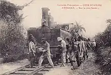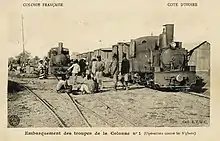 L'histoire du chemin de fer ivoirien commence avec la mission du commandant Houdaille au cours de l'année 1898, qui devait identifier une voie de pénétration vers l'intérieur de la colonie à partir de la côte[10].