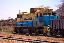 Les trains, dont la longueur peut atteindre 2,5 km[1], sont constitués de 3 ou 4 locomotives diesel-électrique General Motors de 3 300 ch, de 200 à 210 wagons-trémies pour le minerai de fer, d'une charge utile de 84 tonnes, et d'un nombre variable de wagons de service. Six nouvelles locomotives perfectionnées et encore plus puissantes type SD-70-ACS de 4 500 ch construites par EMD (La Grange, Illinois) sont arrivées en 2013 en renfort de l'ancien parc.