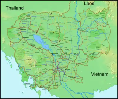 | Route nationale 1 | 10001 | 167 km | Phnom Penh | Bavet (vers le Viet Nam) |