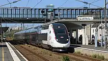 Avec 1 382 000 voyageurs en 2019[2], la gare de Laval est la principale gare du département, desservie par une partie des TGV et Ouigo reliant Rennes à Paris, au nord et au sud-est de la France, et par les TER rapides qui la relient à Angers et Nantes via la virgule de Sablé. Les huit autres gares du département ont une fréquentation de moins de 200 000 voyageurs en 2019[2] et n'accueillent que des trains régionaux du réseau TER Pays de la Loire (Aléop) reliant Le Mans et Rennes.