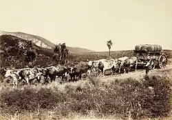 Une charrette dans la région de Canterbury dans les années 1880. Les traces de leurs trajets ont formé les premières routes.