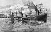 Le bateau à vapeur Mariposa quittant Auckland vers 1880.