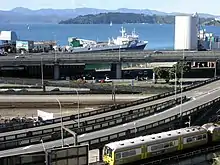 Train, autoroute et ferry à Wellington.