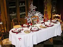 Entre-temps, en 1885, un chroniqueur, Edmond de Catelin, dit Stephen d'Arvre, tout en considérant que « le gros souper n'est plus qu'à l'état de légende »[4], avait fait allusion à la table chargée « des plats réglementaires et des douze desserts obligatoires ». Pour la première fois ceux-ci étaient quantifiés.