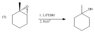 Les époxydes subissent une ouverture du cycle pour donner l'alcool correspondant. Les époxydes asymétriques peuvent être traités avec régiosélectivité aussi bien qu'avec stéréosélectivité, favorisant l'attaque sur la position la plus accessible :