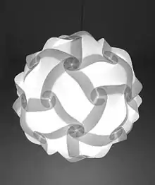 Le concepteur danois Holger Strøm a utilisé le triacontaèdre rhombique comme une base pour la conception de sa lampe constructible IQlight. (IQ pour « Interlocking Quadrilaterals », quadrilatères interbloquants)