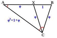 Dans la 2e figure, BXC est un triangle d'or puisque le rapport de la longueur du côté BC à la longueur du côté BX est le nombre d'or :