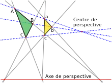 Le théorème de Desargues établit que si deux triangles ABC et abc homologiques, on peut reconstruire l'homologie qui transforme ABC en abc[2].