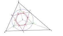 Théorème — Soit un triangle ABC. Pour un cercle parmi le cercle inscrit et les trois cercles exinscrits, on note O son centre et on considère son triangle de contact TATBTC par rapport au cercle choisi. Alors ABC et TATBTC sont homologiques. De plus, pour tout triangle T homothétique de TATBTC par rapport à O, ABC et T sont homologiques.