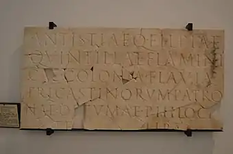 - Inscription retrouvée en 1961 à Vaison-la-Romaine et concernant les Tricastins