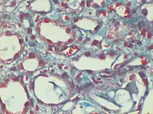 La coloration trichrome de Gömöri est une coloration histologique utilisée sur le tissu musculaire[1],[2]. Elle peut être utilisée pour dépister certaines formes de myopathie mitochondriale.