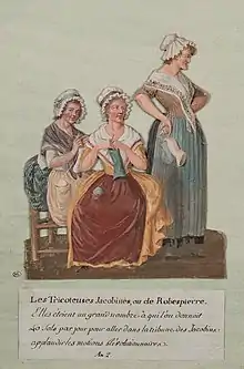 Le terme de « tricoteuse » apparaît en 1793 et finit par désigner l'ensemble des femmes appartenant au mouvement populaire féminin de la Révolution française.