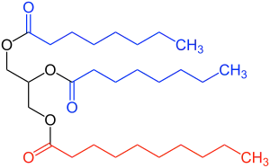 Un triglycéride à chaîne moyenne est un triglycéride dans lequel les trois groupements hydroxyle du glycérol sont estérifiés par des acides gras à chaîne moyenne (6 à 12 atomes de carbone). Il est présent dans l'huile de noix de coco, l'huile de palmiste et le beurre[1].