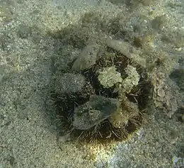 Tripneustes gratilla se recouvrant de débris à La Réunion.