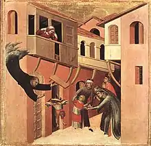 Chacune des quatre scènes est structurée à l'identique dans le même format (82 × 67 cm) : l'accident, l'intervention du saint (plusieurs fois représenté dans la même scène), la prière qui suit, les décors issus de la ville ou de la campagne siennoise.