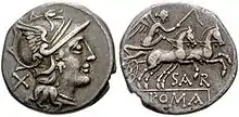 Une deuxième catégorie regroupe les pièces issues de frappes spéciales décidées par le Sénat, portant la légende S C ou EX S C (ex senatus consulto). Ces pièces ne portent donc pas de noms de magistrats monétaires, à la place apparaît l'inscription CVR X FL pour curator denariorum flandorum ou la signature de préteurs (P), d'édiles (CVR AED) ou de questeurs(Q) selon le magistrat qui a été spécialement commissionné par le Sénat[21],[3]. Une troisième catégorie regroupe les monnaies frappées par des généraux en campagne, probablement pour payer leurs troupes[3].