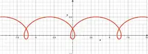 On appelle cycloïde une trochoïde commune qui présente des points de rebroussement (ou cusps) là où P touche L.