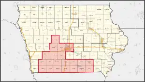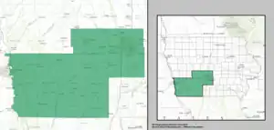 De 2013 à 2022, le district couvrait le coin sud-ouest de l'État, de la zone métropolitaine de Des Moines à l'extrémité nord-est à la grande région de Council Bluffs à l'extrémité sud-ouest.