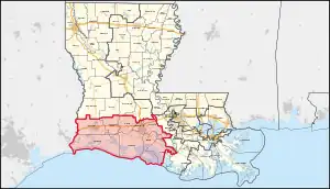 Pendant la plupart du temps de 1823 à 2013, le district contenait de grandes parties du sud-est et du centre-sud de la Louisiane, y compris les paroisses de la rivière et l'East Acadiana. Dans sa configuration finale, il comprenait de nombreuses zones exurbaines et rurales près de la Nouvelle-Orléans, Baton Rouge et Lafayette. Il contenait les villes de Chalmette, Gonzales, Houma, Thibodaux, Morgan City et New Iberia.