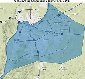 Le 3e district congressionnel du Kentucky est un district de l'État américain du Kentucky. Il englobe presque tout la région métropolitaine de Louisville, qui, depuis la fusion de 2003, est consolidé avec le Comté de Jefferson, bien que d'autres villes constituées existent dans le comté, telles que Shively et St. Matthews. L'extrême atteint l'air métropolitaine du métro de Louisville fait partie du 2e district congressionnel.