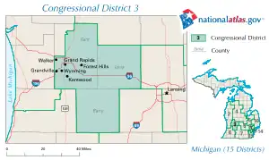 Le 3e district congressionnel du Michigan est un district situé dans l'ouest du Michigan. De 2003 à 2013, il comprenait les comtés de Barry et Ionia, ainsi que tous les comtés sauf la partie nord-ouest du Kent, y compris la ville de Grand Rapids. Lors du redécoupage de 2012, le district a été étendu à Battle Creek. En 2022, le district a été condensé dans les grandes régions de Grand Rapids et de Muskegon, y compris des parties des comtés de Kent, Muskegon et Ottawa. Le redécoupage a supprimé les comtés de Barry, Calhoun et Ionia[1].
