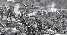 La bataille de Buçaco lancée le 27 septembre 1810 se conclut par une importante victoire de l'armée anglo-portugaise. Masséna sous-estime les forces anglo-portugaises et lance une attaque frontale qui échoue. Les Français sont repoussés assez facilement. Leurs pertes se montent à 4 500 hommes contre 1 250 pour la coalition anglo-portugaise[3]. Après la bataille, les Français se regroupent et parviennent à contourner les positions ennemies par le nord, par la route de Mortágua et de Mealhada, tandis que Wellington doit reculer vers Coimbra afin de défendre la capitale, tout en protégeant ses arrières des troupes françaises. Celles-ci reprennent leur marche mais, tandis que l'armée anglo-portugaise reprend confiance, les Français commencent à entrevoir les difficultés qui les attendent ; le moral des troupes s'en ressent. L'objectif de Wellington est à présent d'atteindre les lignes de Torres Vedras et d'y attendre une éventuelle attaque française.