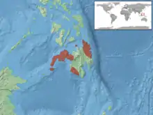 Cette espèce est endémique des Philippines. Elle se rencontre sur les îles de Basilan, de Camiguin et de Mindanao[1].