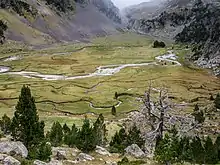 La rivière Esera, née dans le massif de la Maladeta, se dirige vers l'ouest, puis s'oriente au sud pour se jeter dans l'Èbre, dont le cours vers l'est s'achève dans la Méditerranée. À peu de distance des sources de l'Esera, le trou du Toro est un gouffre karstique, d'environ 70 mètres de diamètre et 40 mètres de profondeur, qui reçoit dans une chute spectaculaire les eaux du torrent des Barrancs, issu des glaciers de l'Aneto, des Barrancs et de la Maladeta. Pendant longtemps, on a ignoré vers où ces eaux se dirigeaient.