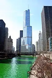 Comme la Trump International Hotel and Tower dispose d'une entrée sur la rivière Chicago et d'un niveau piétonnier situé à 8,2 mètres (27 pieds) en dessous de l'entrée du bâtiment sur Wabash Avenue, la hauteur officielle du gratte-ciel a été recalculée à 423,2 mètres (1 388 pieds), sans ajout physique à la structure[17].