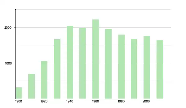 | 1950 | 1 985 | ▼ −2,84 % | |