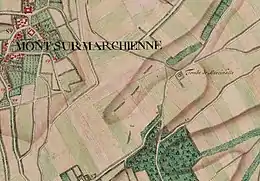 La tombe de Marcinelle sur la carte de Ferraris du XVIIIe siècle