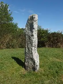Immédiatement à l'ouest, à environ 30 m de la base du tumulus, se dresse un menhir haut de 3,3 m[1], faisant partie du même ensemble[2].