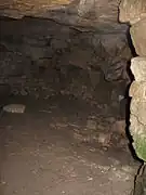 Une stèle gravée, retrouvée brisée en trois morceaux[5], monte la garde dans l'entrée[2],[4].
