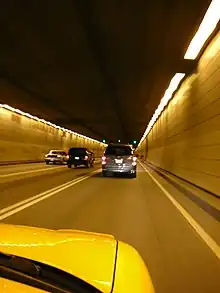 Le tunnel, long de 1 471 mètres, se compose de deux tubes de circulation de 4,4 m de haut et de trois voies de large. Entre ces tubes un tube central loge l'équipement de drainage, d'éclairage, de ventilation et de sécurité. Le tunnel supporte une pression d'eau de 550 bars (8 000 psi) grâce à sa structure en béton précontraint utilisant du Trap rock.