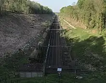 Côté province, la sortie du tunnel se fait en tranchée sur une longueur de 350 m. Des murs en pierre de 3 m de haut soutiennent les talus. Ces murs subissent des mouvements transversaux de part et d'autre, jusqu'à déformer la voie. Une limitation temporaire de vitesse a été mise en place dans cette zone, et est toujours valable aujourd'hui[1],[2].