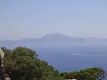 Photo du détroit vu du rocher de Gibraltar. Les montagnes marocaines du Rif sont en arrière-plan.