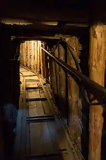 Au début, le tunnel n'était qu'un chemin boueux où les provisions devaient être portées à dos d'homme. Un peu moins d'un an après sa mise en service, il fut équipé de rails où pouvaient rouler des wagonnets. Une ligne électrique de 12 mégawatts, des pompes pour évacuer l'eau et un éclairage permanent complétaient l'aménagement. Les inondations étaient un danger constant et l'absence de ventilation obligeait toute personne s'avançant dans le tunnel à porter un masque à gaz.