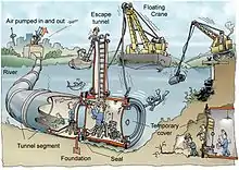Schéma de la méthode de construction du tunnel de la Meuse.