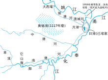 En plus d'endiguer le risque d'inondation et d'écarter définitivement l'eau salée des surfaces cultivables, le barrage fut également utilisé pour détourner l'eau vers deux directions différentes. Le premier flux se dirige le long de la rivière de Nantang, dessert Dongqiao, Hengzhang, Beidu, Lishe, Shiqi et Duantang, puis atteint la ville de Ningbo intra-muros avant de se déverser dans le lac du Soleil (en chinois : 日湖 ; pinyin : ) aujourd'hui disparu et le lac de la Lune (en chinois : 月湖 ; pinyin : ) qui existe encore aujourd'hui. Le second flux remonte vers le nord, desservant Xiaoxi, Meiyuan et Shenjiao au passage.